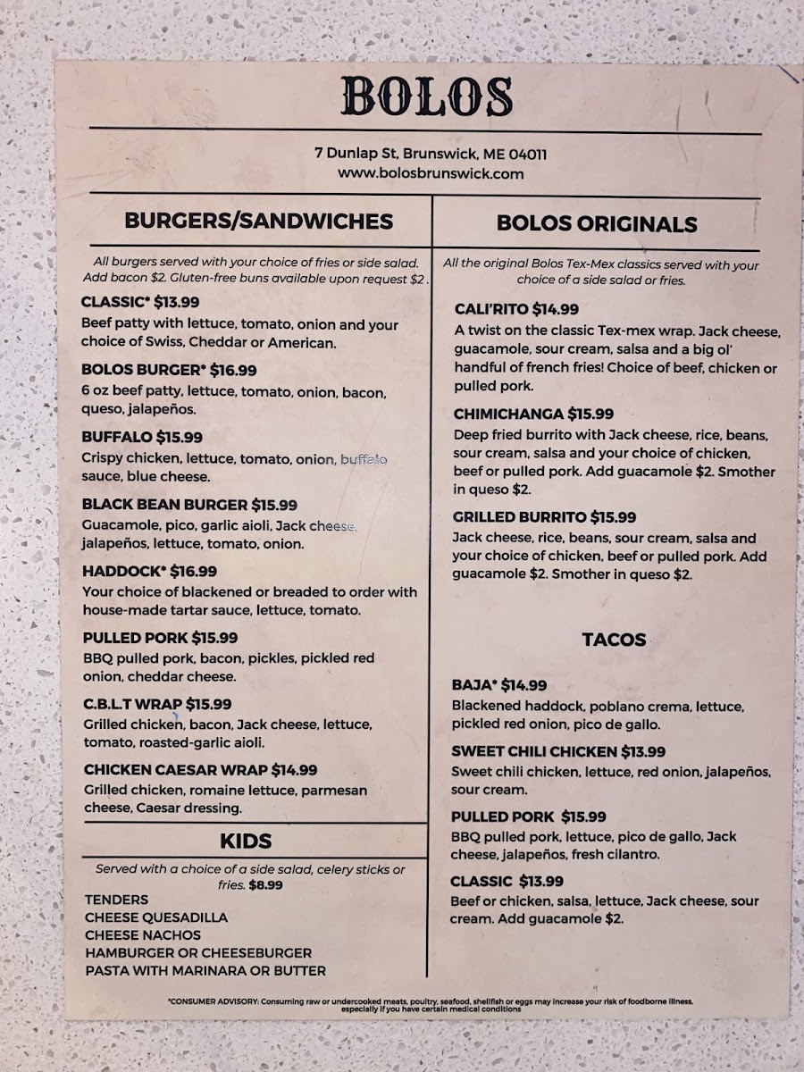 Introducing the menu at Tonic at Bolos, located at 7 Dunlap St, Brunswick, ME, where Tex-Mex flavors meet a vibrant atmosphere. This unique eatery offers delicious, locally sourced food that aims to tantalize your taste buds.